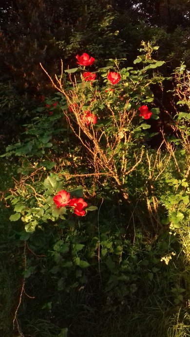 Rosmarin und Rosen mit Thuyagrün ummantelt. Einige Rosen. Brennholz gesägt. Kreissäge quietscht und das Blatt ist stumpf. Habe noch immer keinen guten Schärfer gefunden. Weiß nicht, wie man die Säge auseinander baut zum Ölen und fetten. Erschließt sich nicht von selbst. Müsste die Bedienungsanleitung lesen. Bad geputzt. Der Fußboden ist immer eisig kalt. Vielleicht ist eine alte Sickergrube darunter. Vielleicht wächst eine Wurzel in das alte Abflussrohr und deswegen lupft es die Fliesen vor der Badezimmertür an. Keine neuen Baustellen aufreißen. Träume von guten Handwerkern.