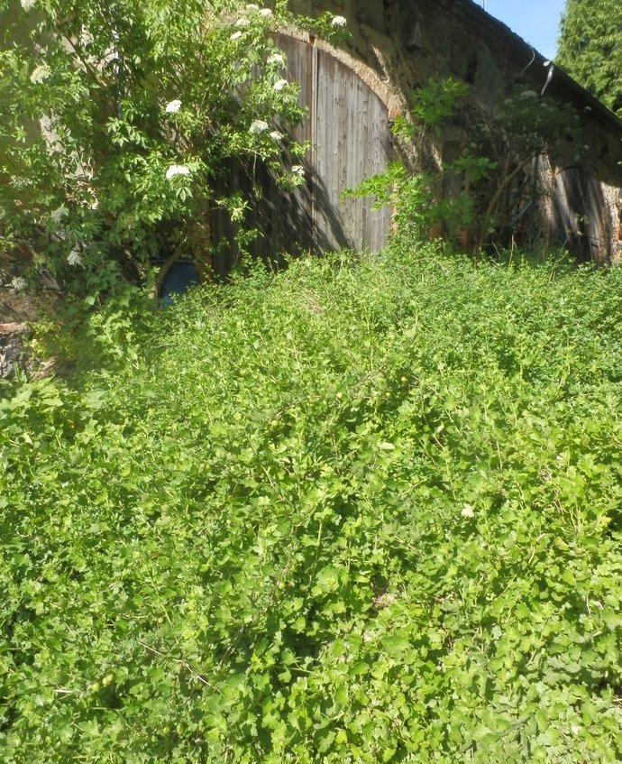 Das Laub der Eiche im Hof zusammen gerecht und weggeschafft. Unter dem Efeuteppich neben der Tür zum Kuhstall lag ein Holzstapel, der da schon sehr lange gelegen haben muss und aus dem erschreckt die Mäuse geflüchtet sind. Vielleicht sollte ich den ganzen Teppich wegschneiden.